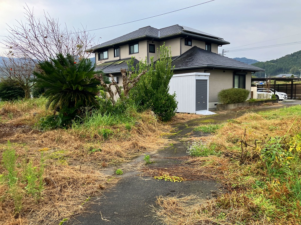 草木が伸び、通路や建物周りも使いづらい状態でした。敷地が広いため草刈りも大変です。